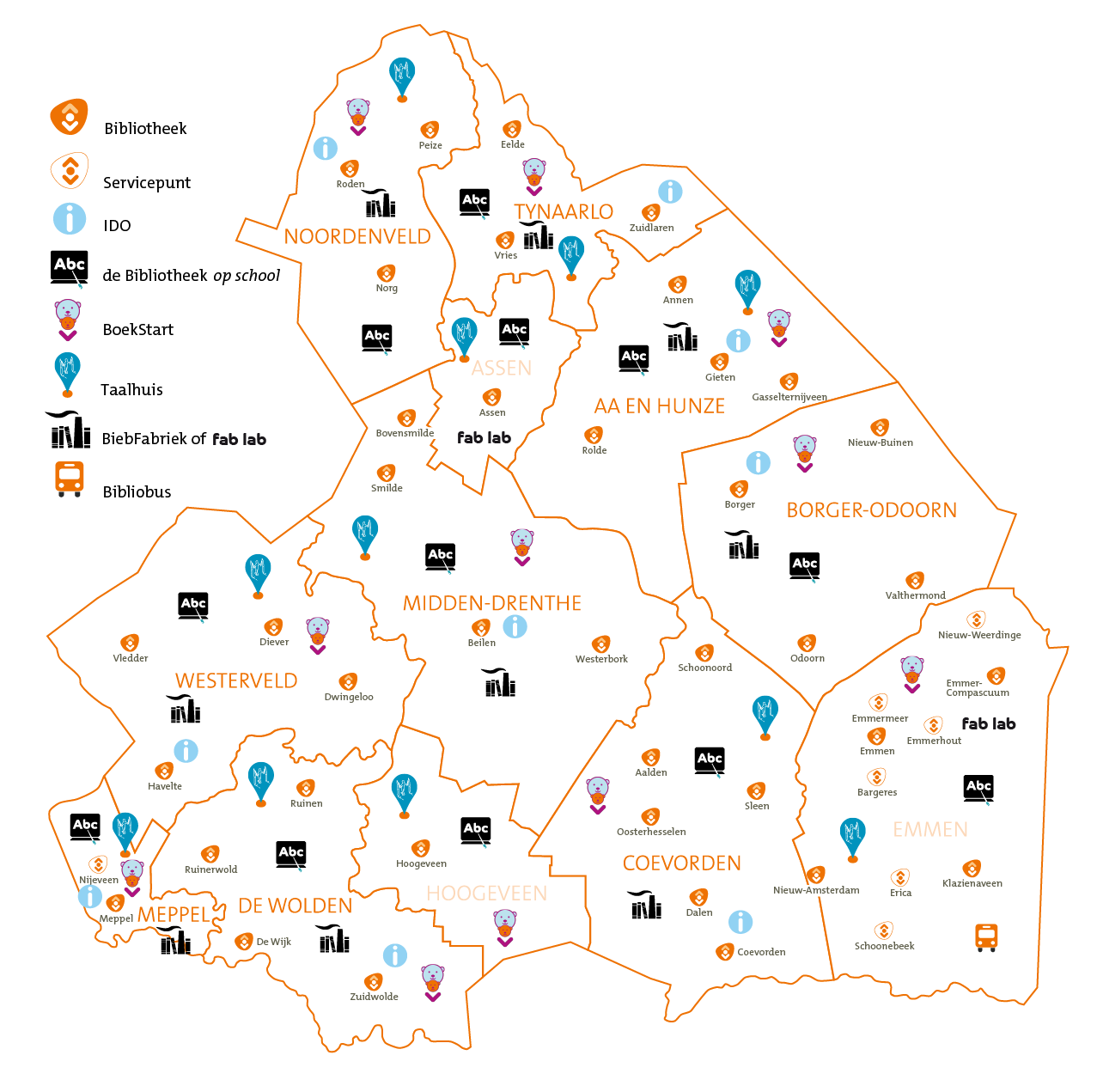 Biblionet Drenthe is zowel bibliotheekorganisatie voor 9 Drentse gemeenten als provinciale ondersteuningsinstelling (POI) voor de bibliotheken in Drenthe. Wij werken als POI voor alle vier bibliotheekorganisaties in Drenthe, te weten de Bind-bibliotheken, Facet Emmen, DNK en Bibliotheek Hoogeveen.